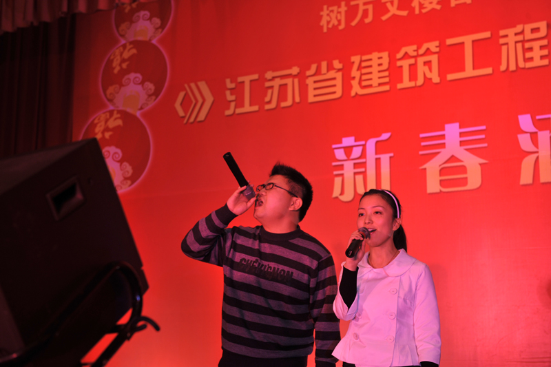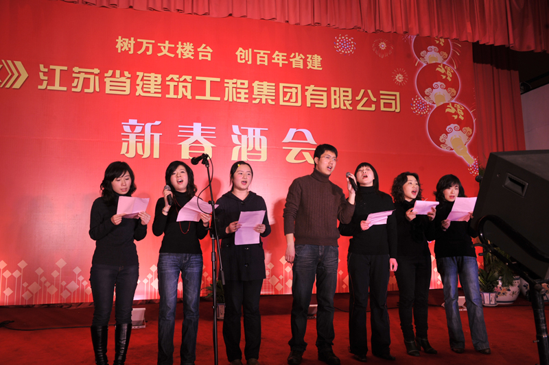 酒會上,各部門演出的節目均由集團機關各部門員工自編自導自演,節目豐富多彩、形式多樣、幽默逗趣、精彩紛呈。由集團資產管理部韓燕帶來的茶藝表演將中國的茶文化充分地演繹;總裁助理李嘉增和市場經營部鄭畏畏的交誼舞以及副總裁曾固的高亢歌聲更是得到全場的叫好。酒會文藝表演在獲得國際大獎的雙人舞和國家戲曲“梅花獎”得主——揚州市揚劇團團長李政成的戲曲聯唱中達到高潮。為了表示對省建人的一年工作的肯定,仇天青總裁以一首《Right here waiting》寄托了全部的祝福,引得全場觀眾長時間鼓掌。文藝匯演接近尾聲,由集團審計監督部員工帶來的小合唱《明天會更好》,給大家留下了深刻的印象和感動的回憶。