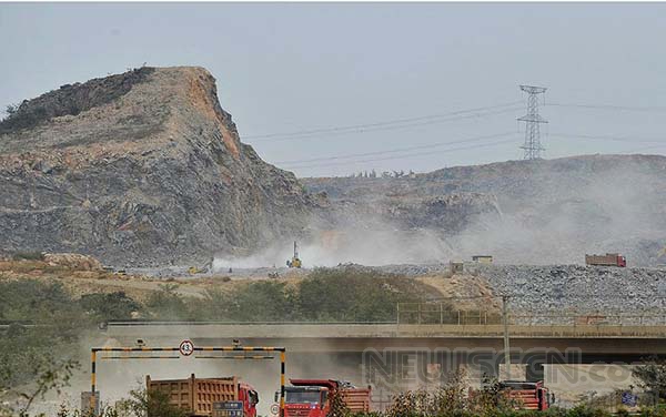 9月15日,有媒體報道稱,在大連市甘井子區北部的大連新機場建設工地,眾多重型卡車往返山海之間,將附近挖山的土石方填到海里造機場。