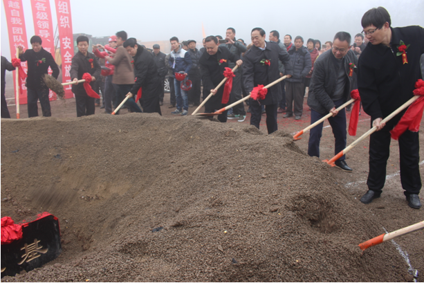 ■出席儀式的領導為項目奠基培土